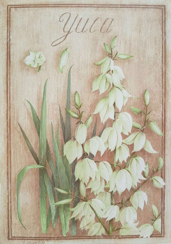 Rám je ručně voskovaný s patinou červotoče v barvě světlého dubu.