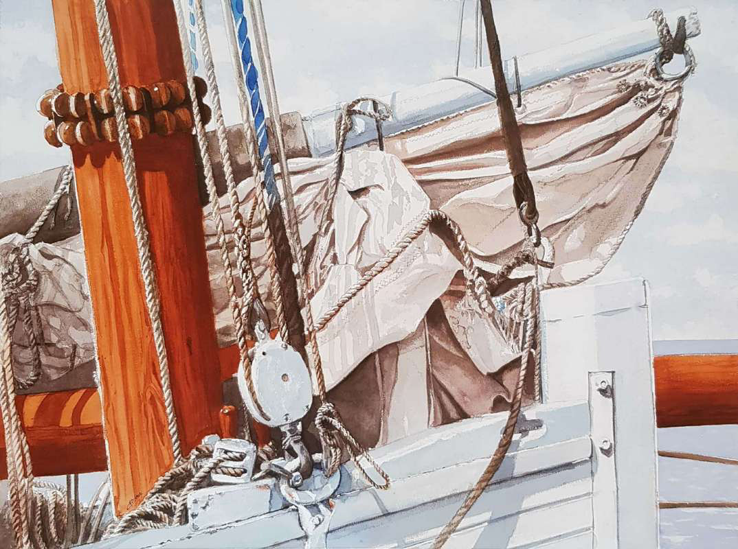 Obrázek 30x40, lanoví, rám sv. dub - červotoč