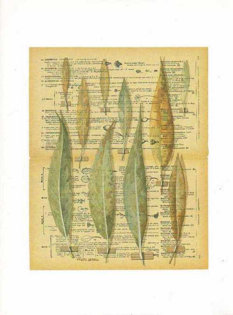 Obrázek 30x40, listy eucalyptus & oliva, rám bílý s patinou