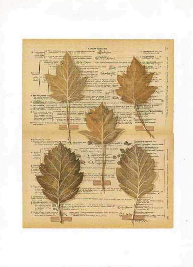 Obrázek 30x40, listy jeřáb & topol, rám bílý s patinou