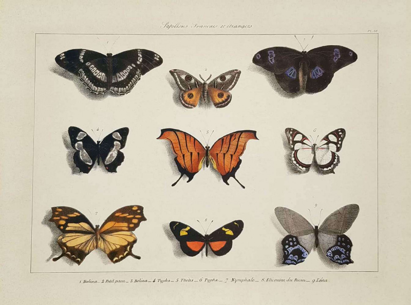 Obrázek 30x40, sbírka motýlů II., rám sv. dub - červotoč