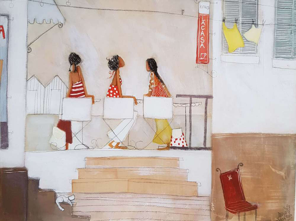 Obrázek 30x40, ženy v kavárně, rám bílý s patinou