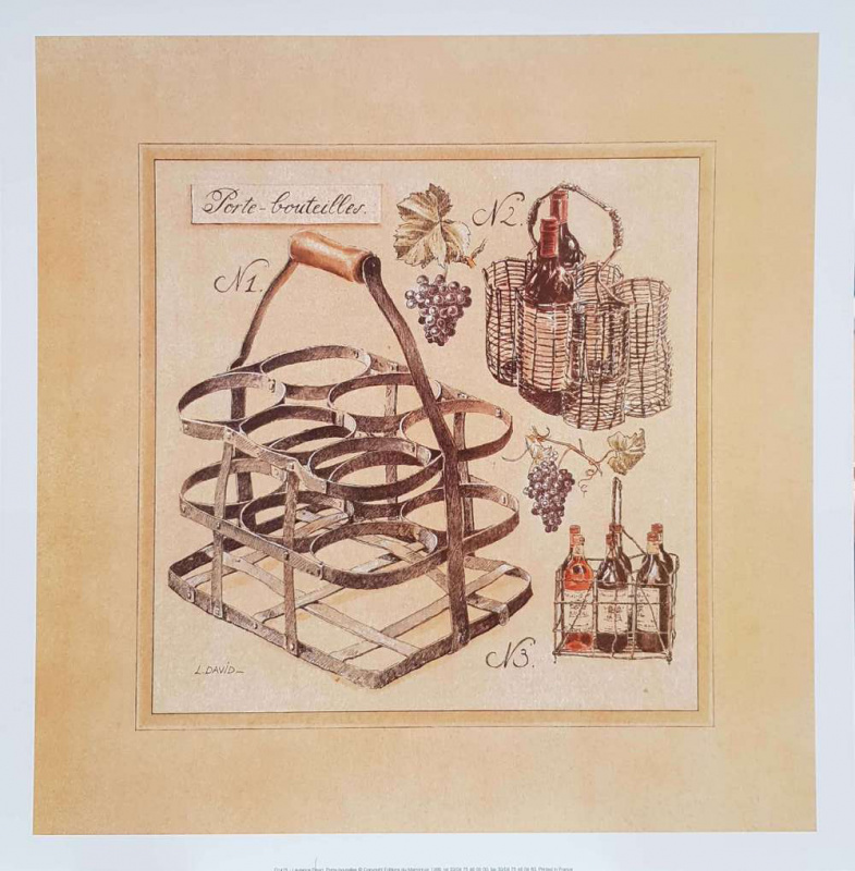 Obrázek 33x33, vinařství - stojan na lahve, rám sv. dub - červotoč