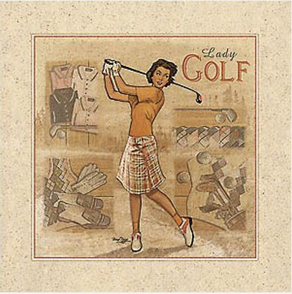 Obrázek 40x40, golfistka, rám sv. dub - červotoč