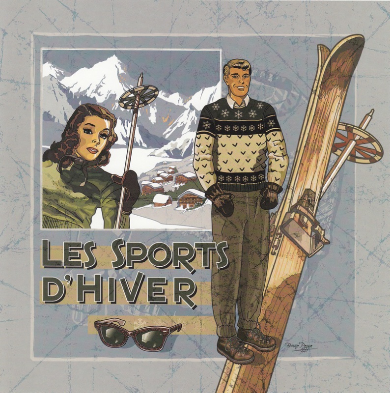 Obrázek 40x40, zimní sporty, rám sv. dub - červotoč