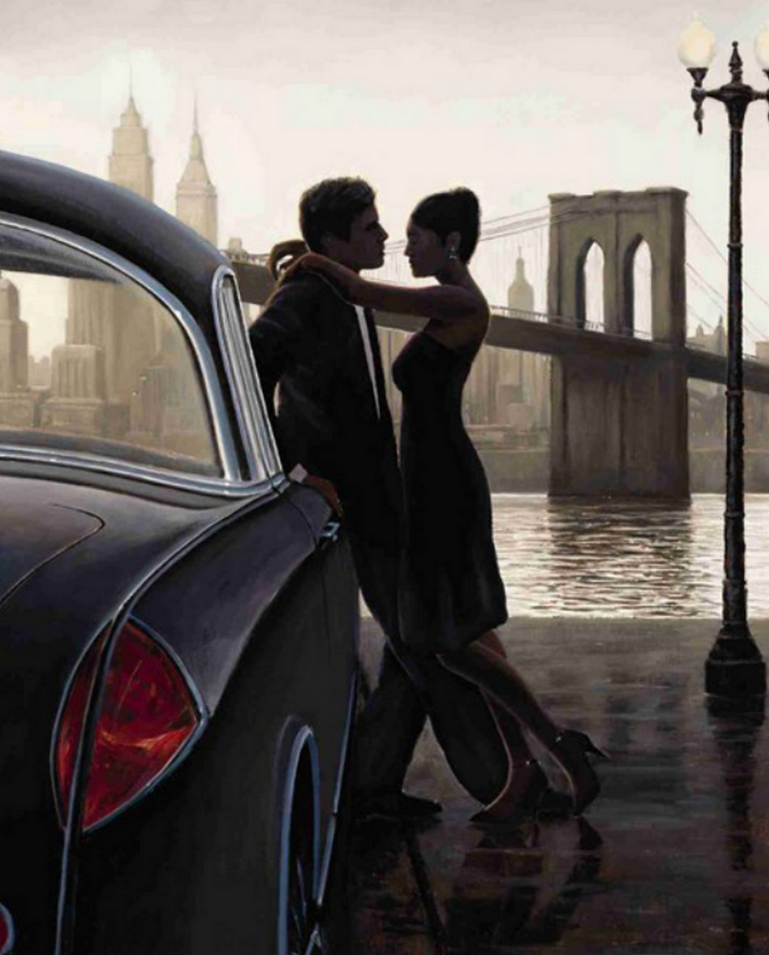 Obrázek 30x40, večerní dav, rám bílý s patinou