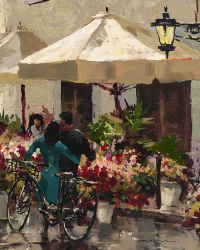 Obrázek 40x50, stánek s květinami, rám sv. dub - červotoč