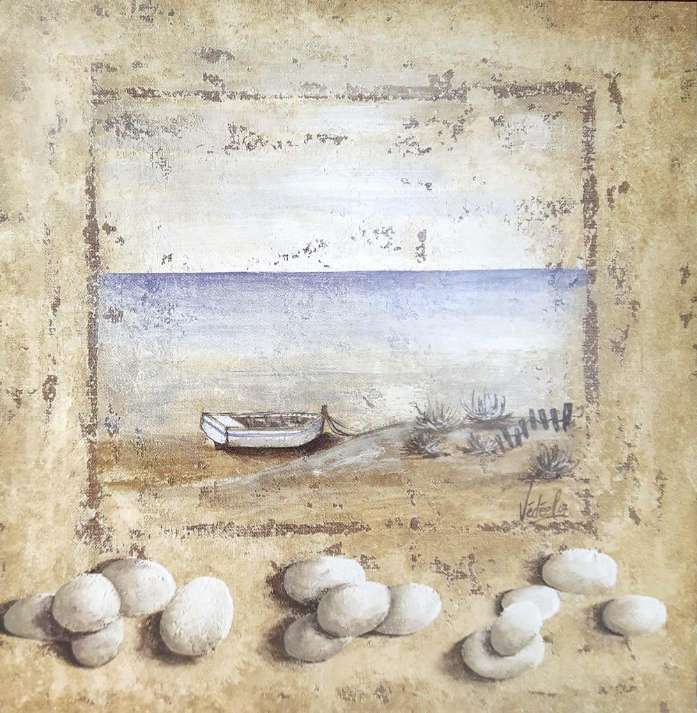 Obrázek 50x50, lodička, rám sv. dub - červotoč