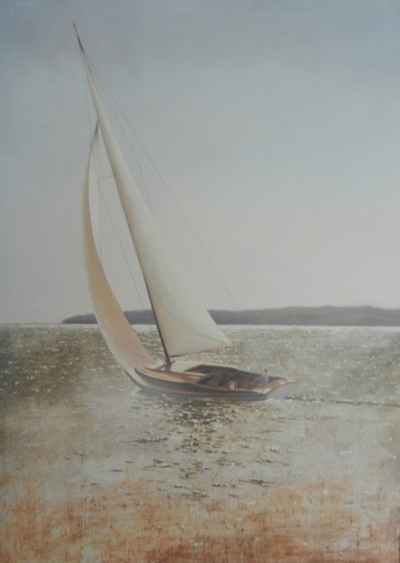 Obrázek 50x50, lodička, rám sv. dub - červotoč