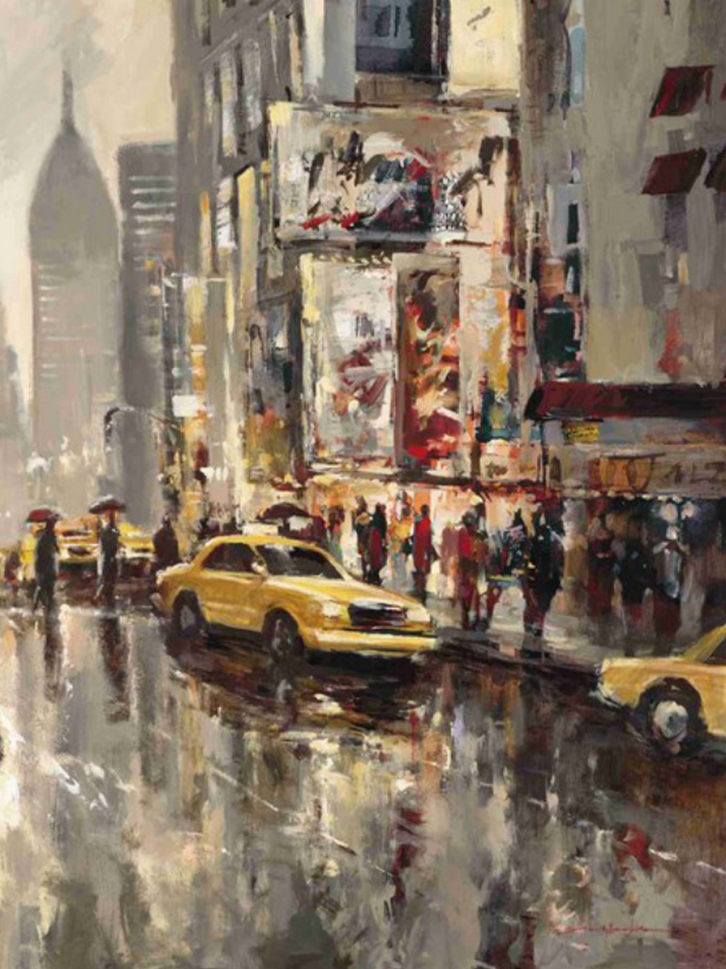 Obrázek 60x80, taxi, rám sv. dub - červotoč