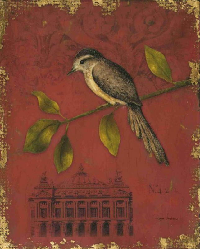 Obrázek 14x14, chatka, rám bílý s patinou