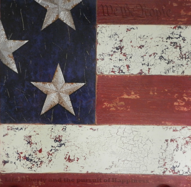 Obrázek 70x70, vlajka, rám bílý s patinou