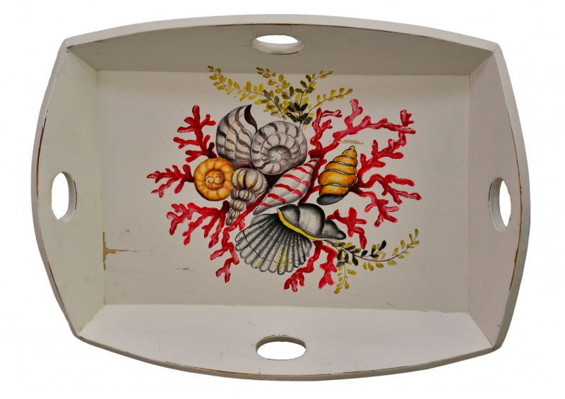 Dřevěný podnos na jídlo z mahagonového dřeva s ručně malovaným motivem mořských plodů může zajímavě zpestřit Vaší jídlenu či obývací pokoj při servírování. Podnos je dostatečně prostorný na několik talířků či šálků.