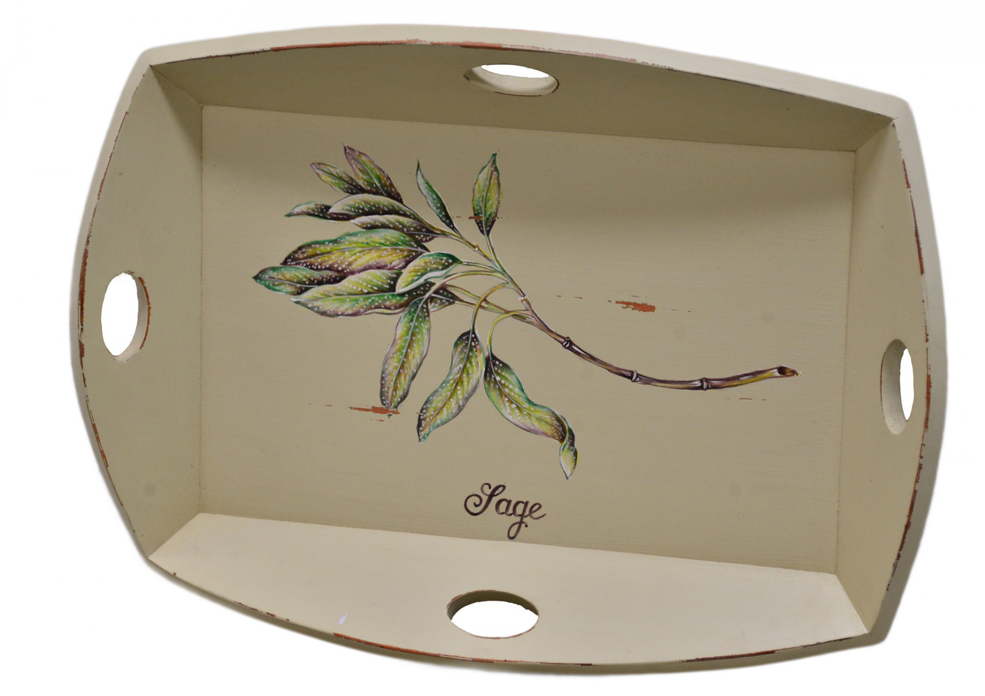 Dřevěný podnos na jídlo z mahagonového dřeva s ručně malovaným motivem šalvěje může zajímavě zpestřit Vaší jídlenu či obývací pokoj při servírování. Podnos je dostatečně prostorný na několik talířků či šálků.