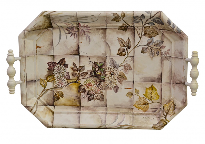 Dřevěný podnos na jídlo z mahagonového dřeva s ručně malovaným motivem květů může zajímavě zpestřit Vaší jídlenu či obývací pokoj při servírování. Podnos je dostatečně prostorný na několik talířků či šálků.