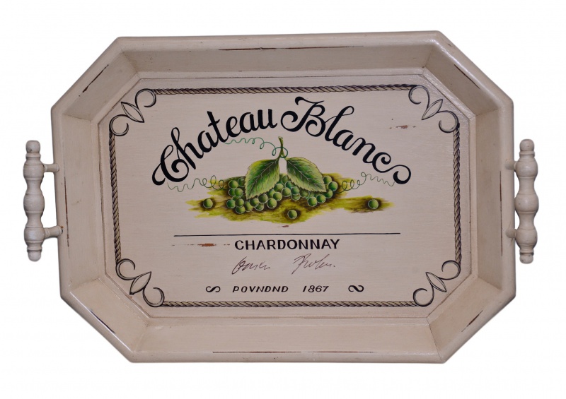 Dřevěný podnos na jídlo z mahagonového dřeva s ručně malovaným motivem vína může zajímavě zpestřit Vaší jídlenu či obývací pokoj při servírování. Podnos je dostatečně prostorný na několik talířků či šálků.