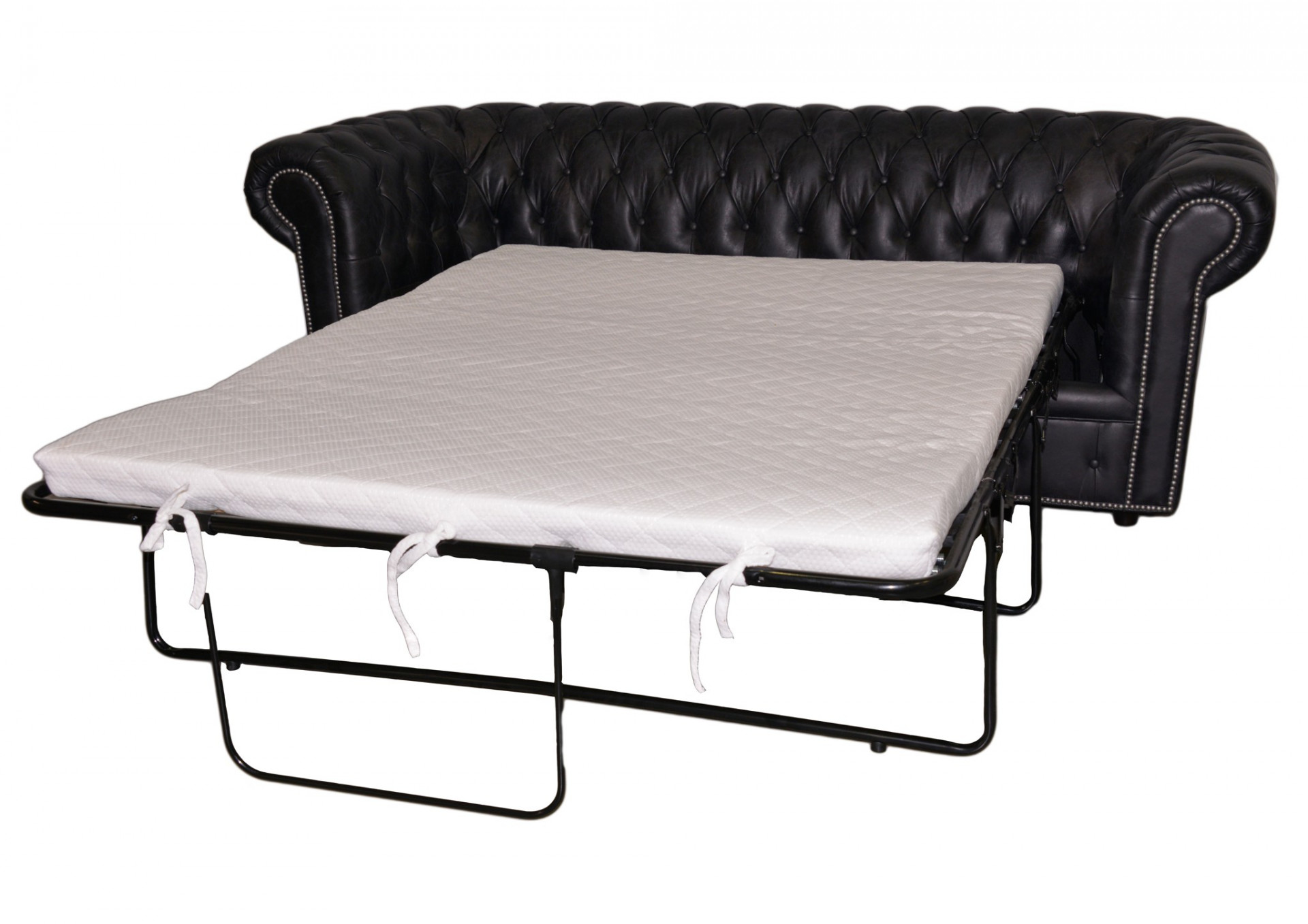 Pohovka Chesterfield s přistýlkou, černá vintage kůže