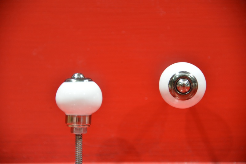 Porcelánová úchytka bílá se stříbrným vrškem, kulatá, malé provedení - průměr 25mm. Dodáváno se šroubem - délka 40mm.