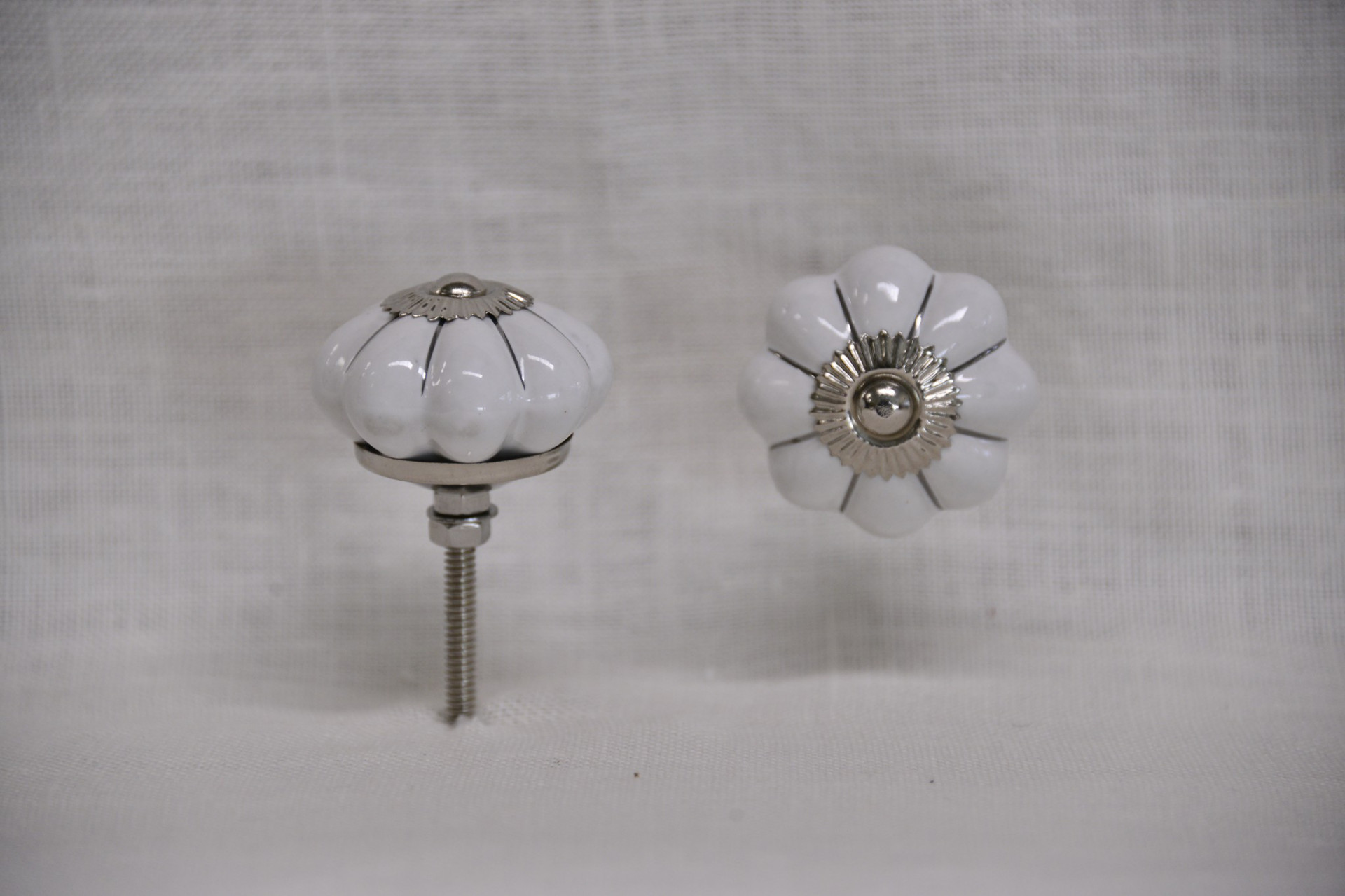Porcelánová úchytka kulatá bílá, stříbrný vršek, průměr 25mm