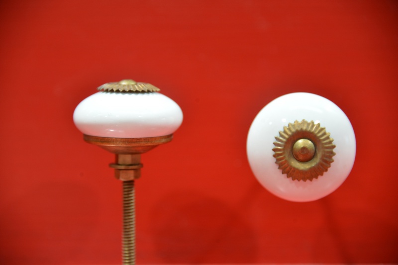 Popis produktu:Porcelánová úchytka bílá se zlatým vrškem, průměr 35mm. Dodáváno i se šroubem - délka 40mm.
