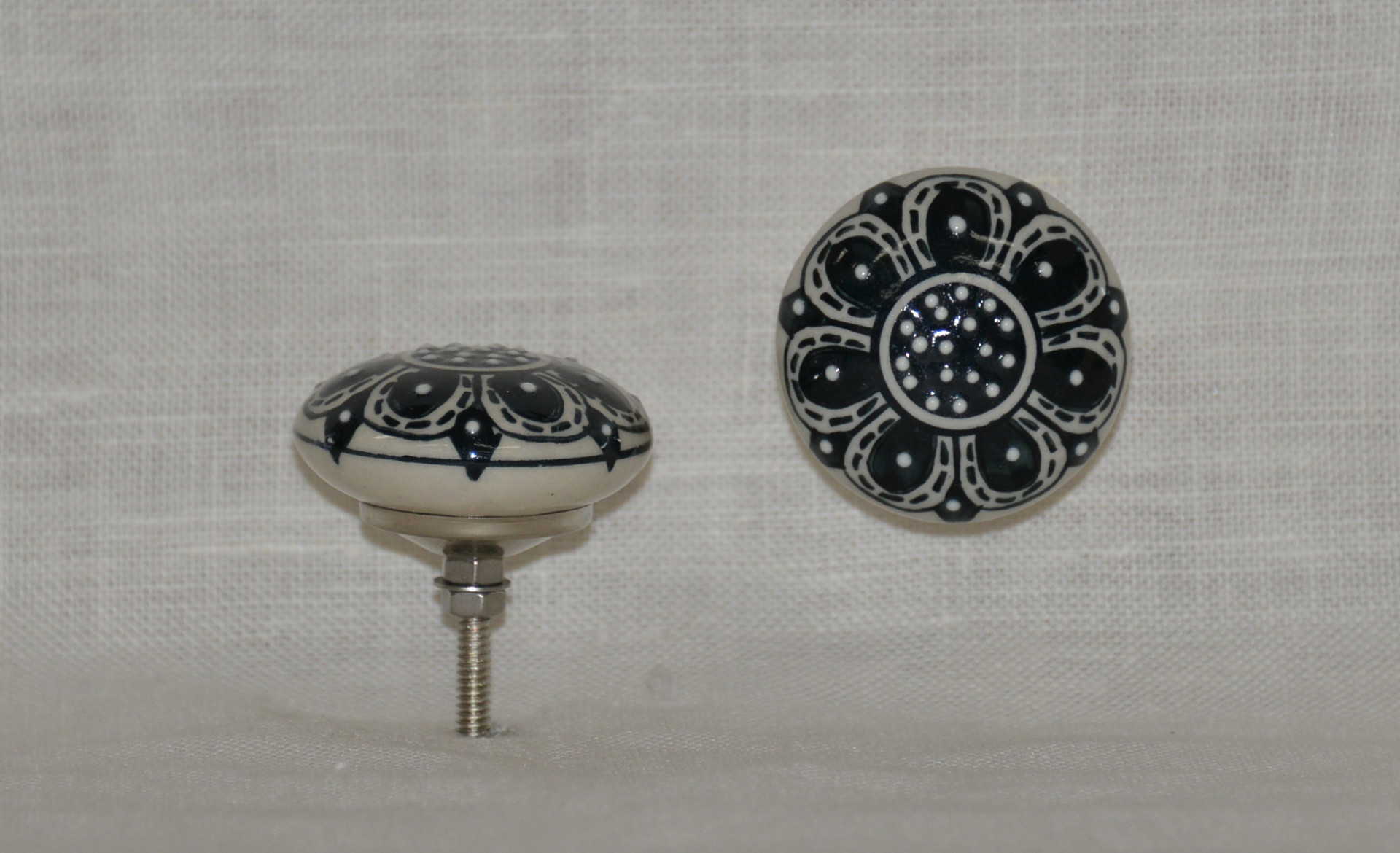 Popis produktu:Porcelánová úchytka černá květina, průměr úchytky 45mm. Dodáváno i se šroubem - délka 40mm.