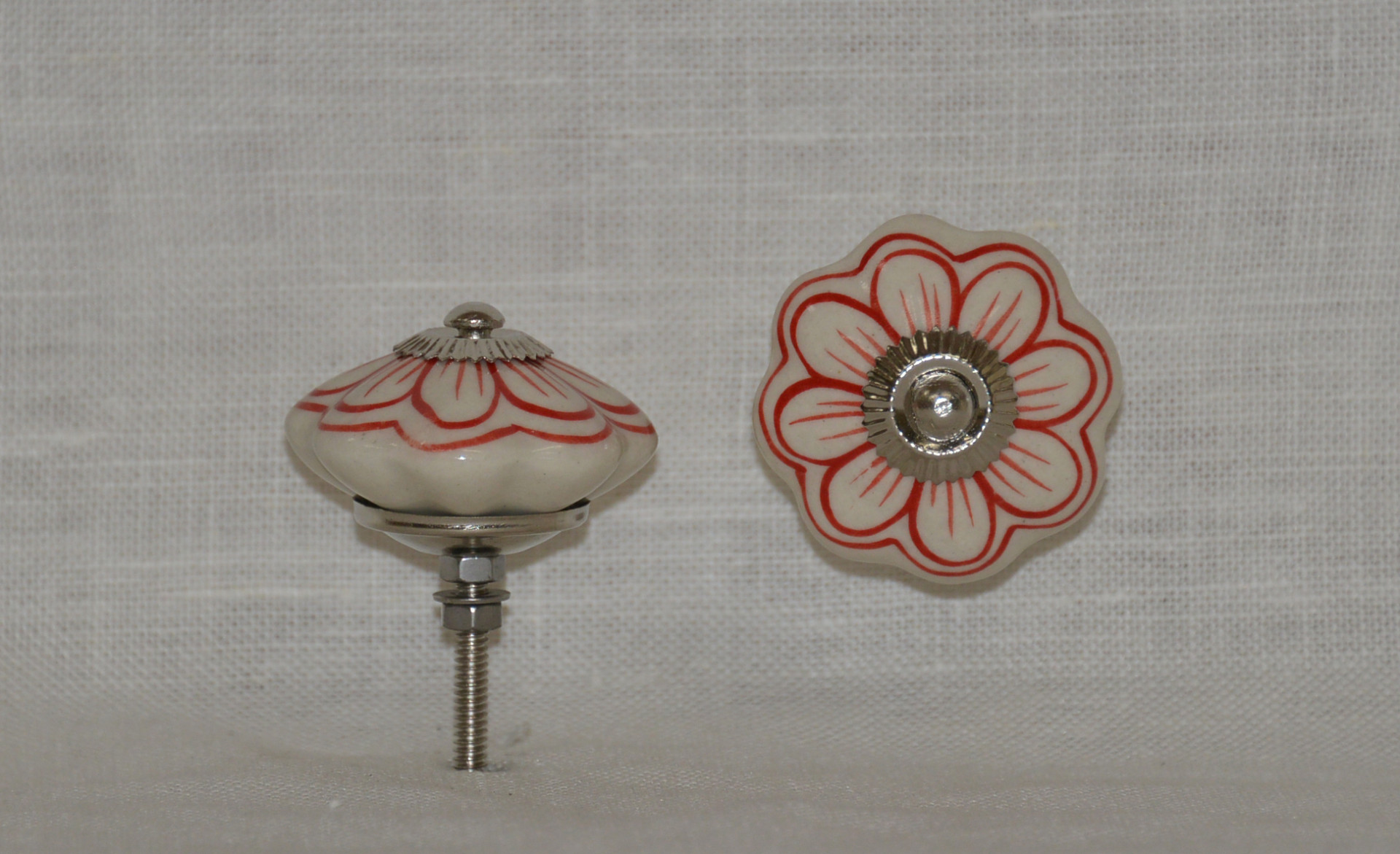 Popis produktu:Porcelánová úchytka červený květ, průměr úchytky 45mm. Dodáváno i se šroubem - délka 40mm.