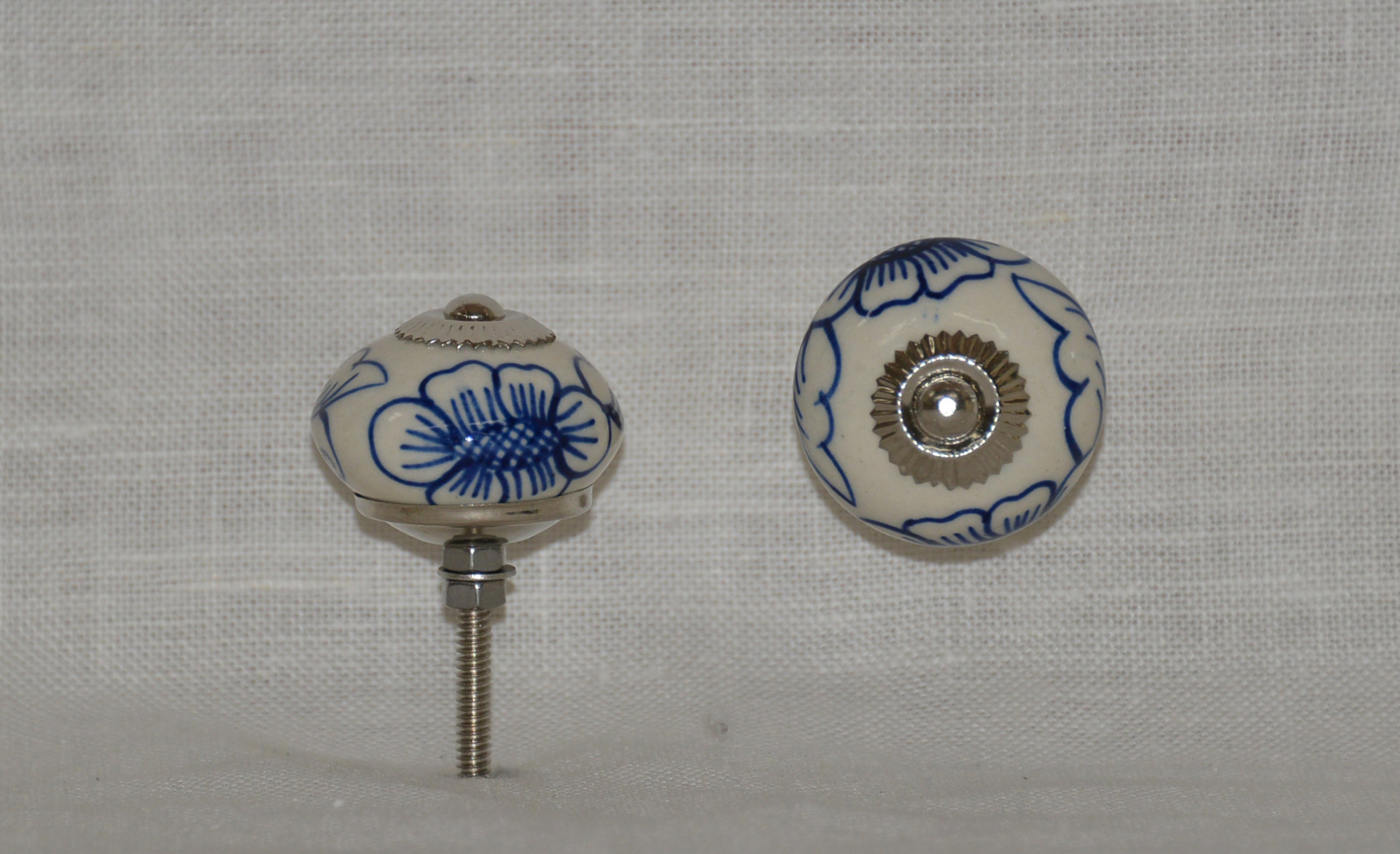 Popis produktu:Porcelánová úchytka krémová s modrými květy, průměr úchytky 40mm. Dodáváno i se šroubem - délka 40mm.