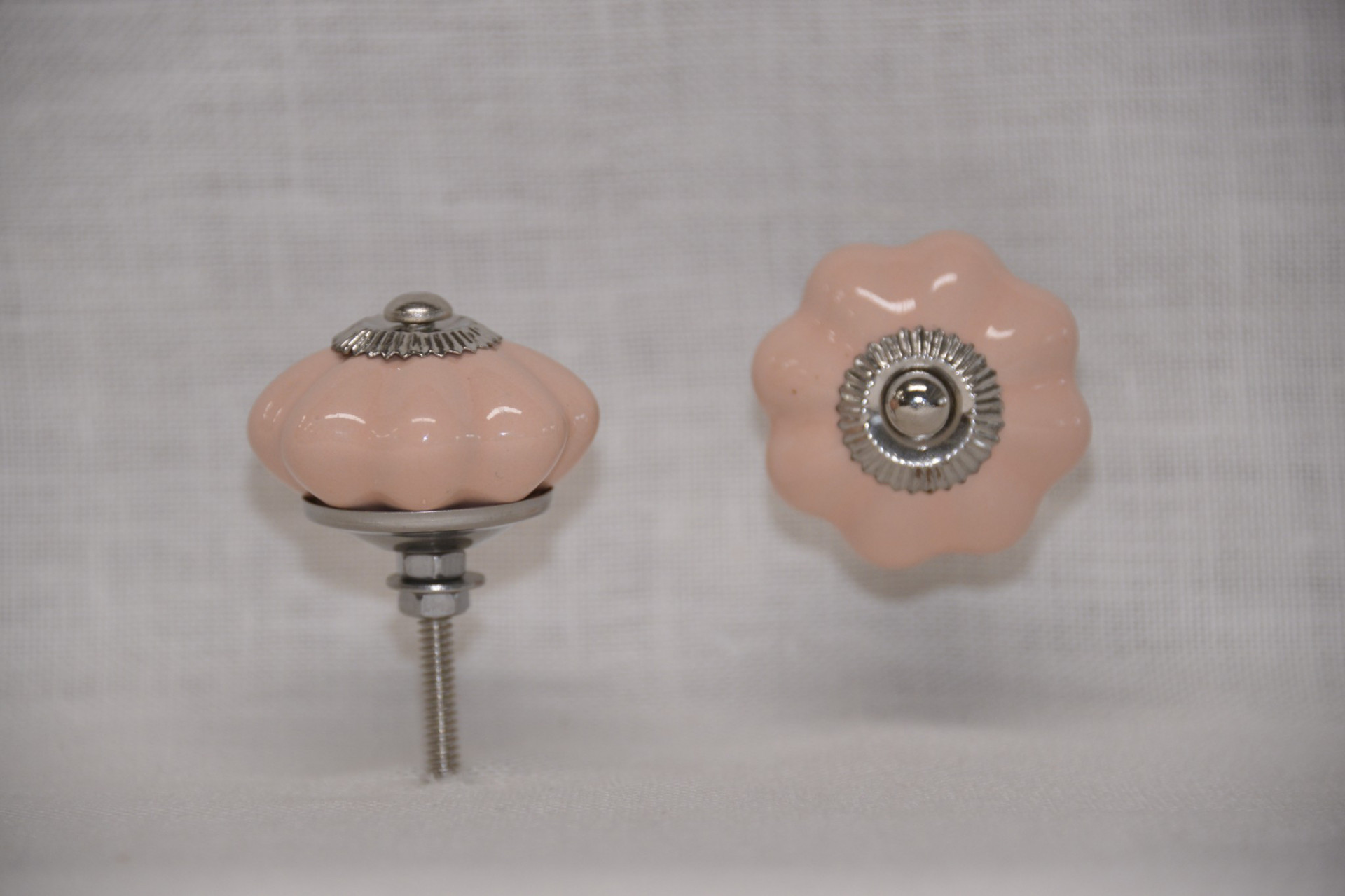 Porcelánová úchytka lososová, průměr úchytky 40mm. Dodáváno i se šroubem - délka 40mm.