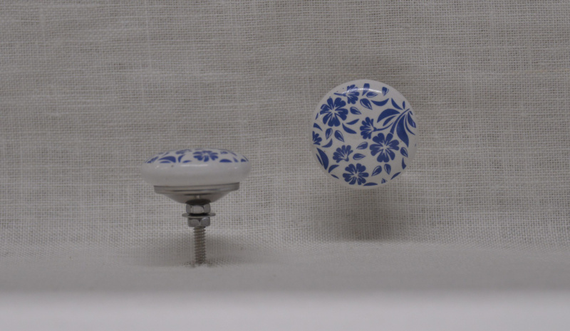Popis produktu:Porcelánová úchytka modrá květina, průměr úchytky 45mm. Dodáváno i se šroubem - délka 40mm.