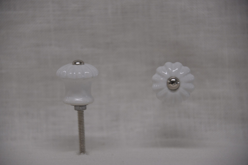 Porcelánová úchytka, kulatá bílá, stříbrný vršek, průměr 40mm