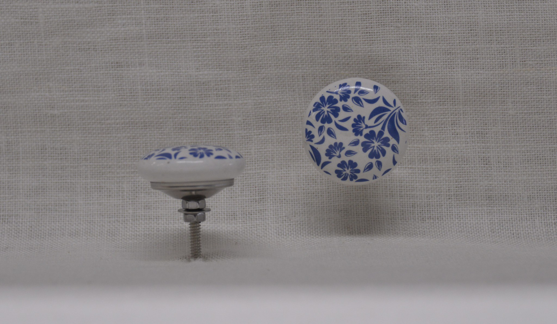 Popis produktu:Porcelánová úchytka modré květy, průměr úchytky 40mm. Dodáváno i se šroubem - délka 40mm.