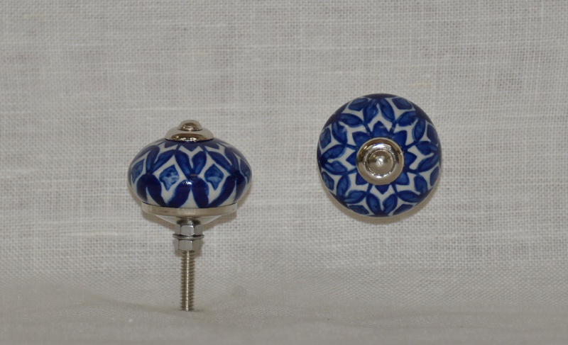 Popis produktu:Porcelánová úchytka s modrou malbou, průměr úchytky 40mm. Dodáváno i se šroubem - délka 40mm.