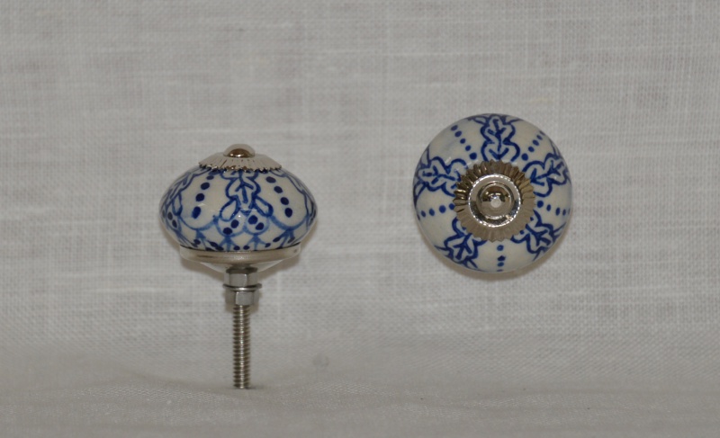 Porcelánová úchytka s modrou malbou, průměr úchytky 40mm. Dodáváno i se šroubem - délka 40mm.