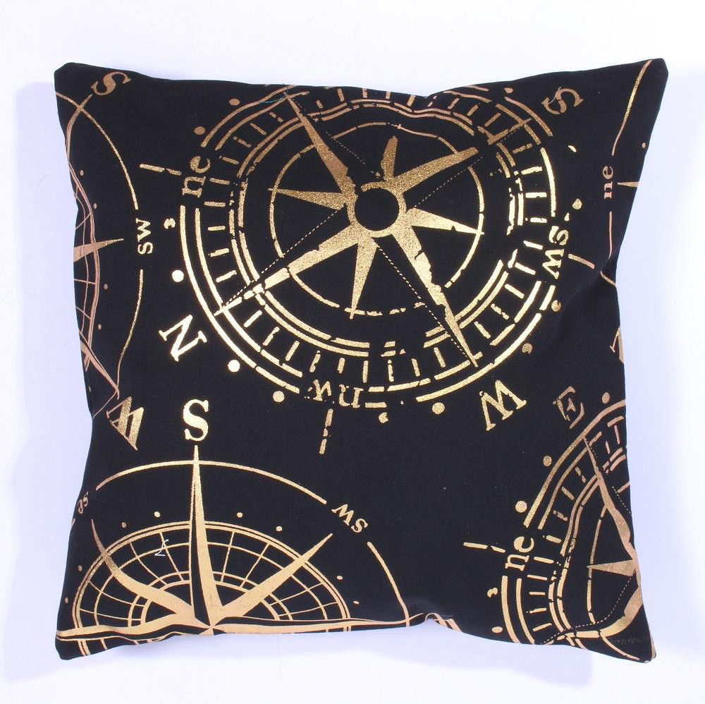 Povlak na polštář s kompasem , černý. Bez výplně.