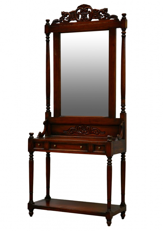 Preferujete výraznější a mohutnější kusy nábytku? Mahagonová stěna v Provence stylu je přesně pro vás. Do vaší chodby, haly či předsíně dodá atmosféru, eleganci i nádech luxusu. Zrcadlo, odkládací prostor i 3 zásuvky z ní dělají nejen krásný, ale i praktický kousek nábytku, jež by vás neměl chybět.