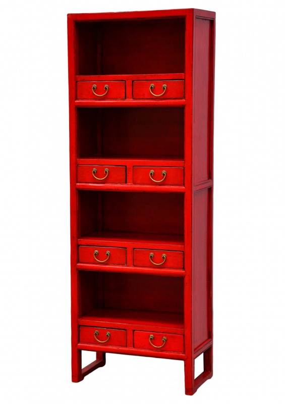 Jasně červená skříň ve stylu Provence má dokonale řešený úložný prostor, takže nejen, že je tento regál z masivního dřeva nádherný na pohled, je navíc opravdu praktický. Má 8 malých zásuvek na drobné předměty, takže konečně budete mít ideální místo na uložení tužek, dokumentů či šperků, a zároveň 4 police s velkou nosností, které vypadají báječně zaplněné knihami. Udělejte díky tomuto kousku váš obývací pokoj nebo ložnici ještě o trochu krásnější!