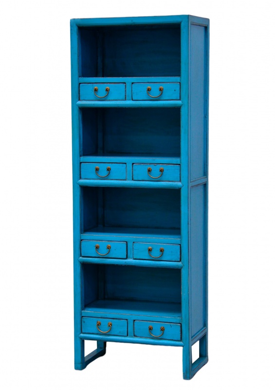 Blankytně modrá skříň ve stylu Provence má dokonale řešený úložný prostor, takže nejen, že je tento regál z masivního dřeva nádherný na pohled, je navíc opravdu praktický. Má 8 malých zásuvek na drobné předměty, takže konečně budete mít ideální místo na uložení tužek, dokumentů či šperků, a zároveň 4 police s velkou nosností, které vypadají báječně zaplněné knihami. Udělejte díky tomuto kousku váš obývací pokoj nebo ložnici ještě o trochu krásnější!