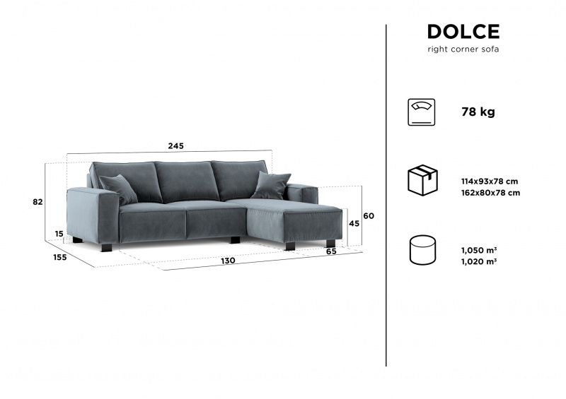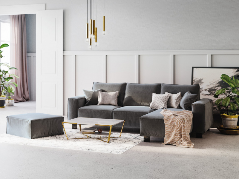 Rohová pohovka Dolce, pravý roh, šedý samet