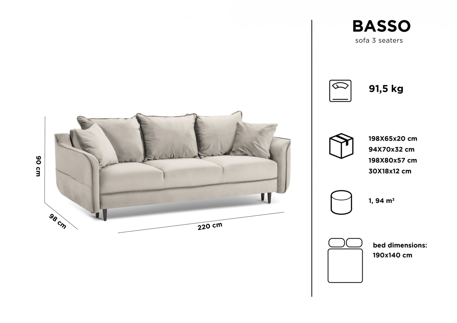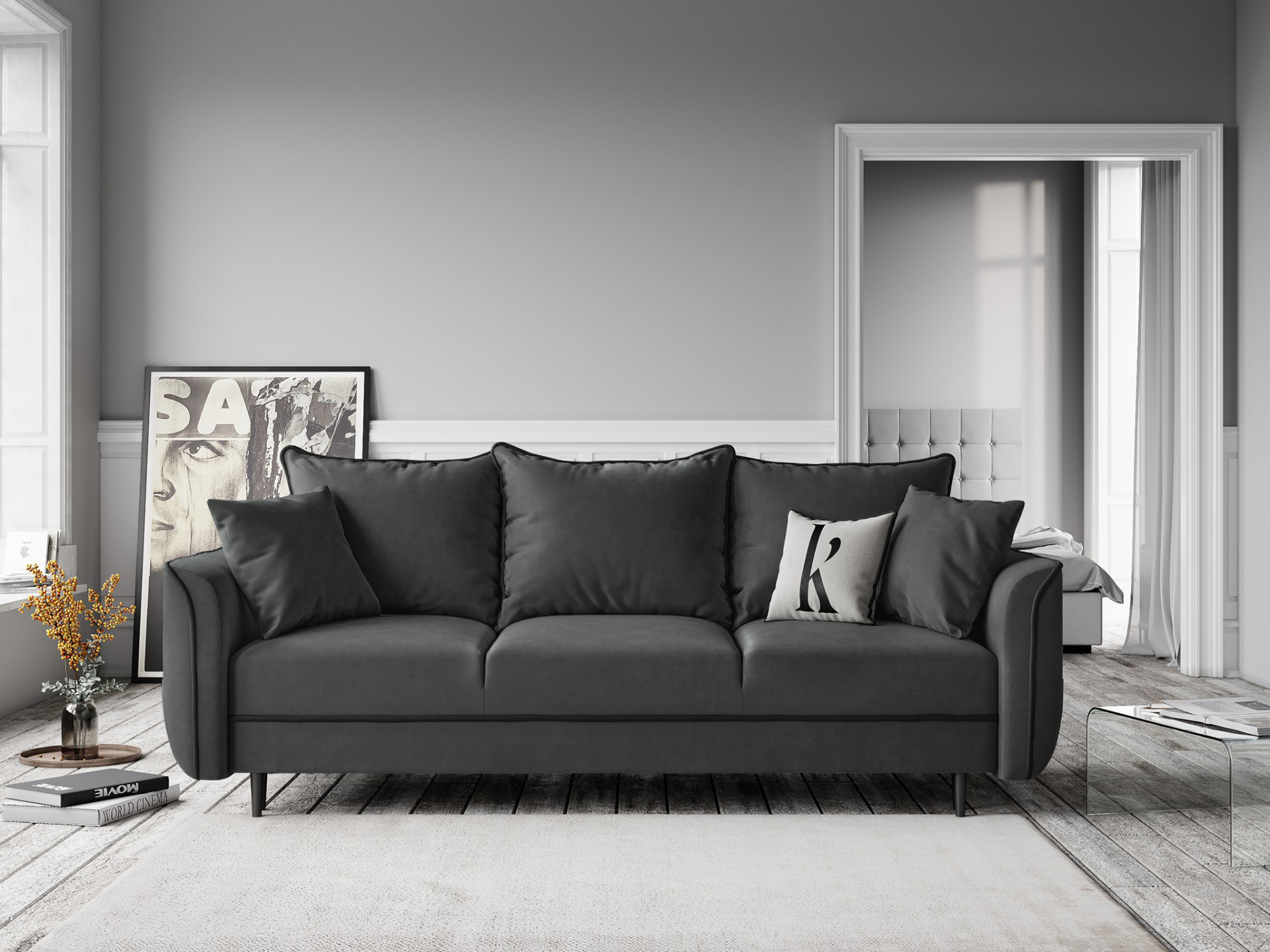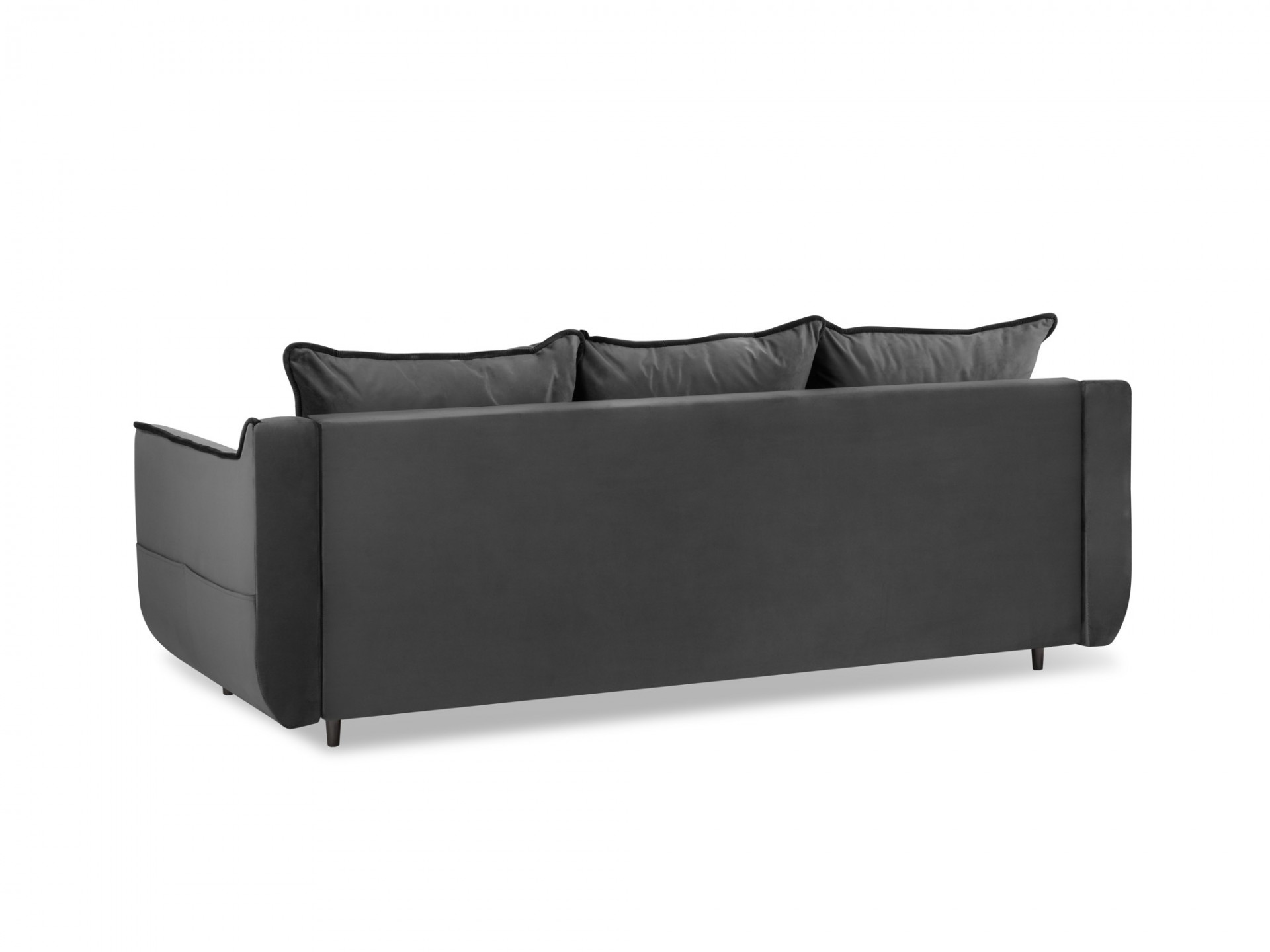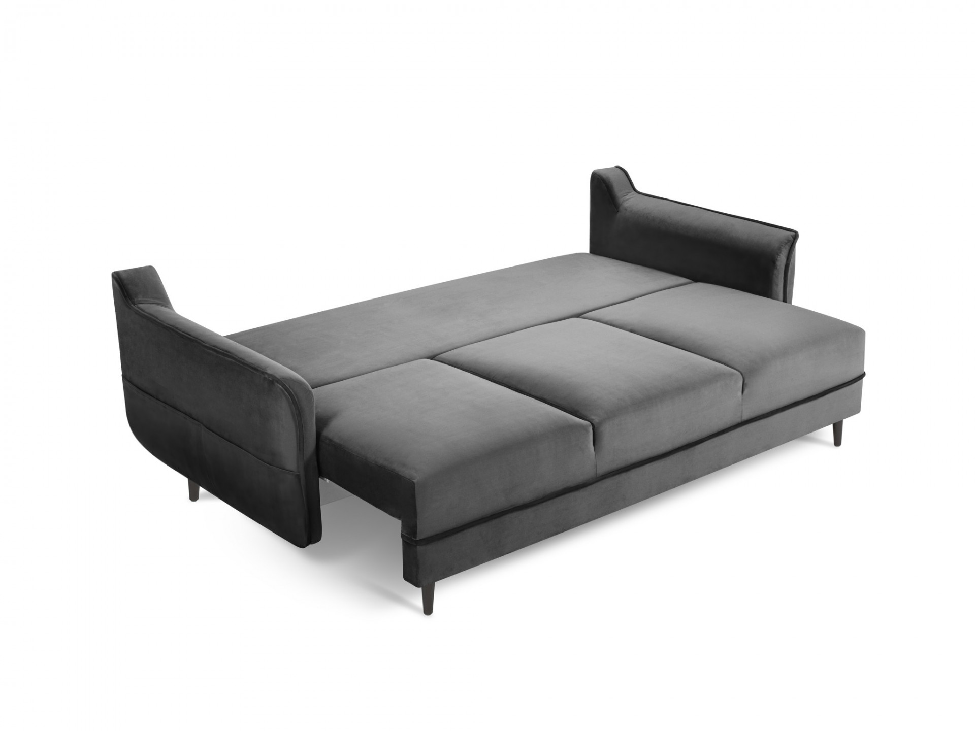 Rozkládací sametová pohovka Basso trojsedák v tmavě šedé sametové látce je ta nejlepší volba pro toho, kdo požaduje designový kousek a zároveň praktické posezení do interiéru. Pohovka obsahuje nejenom rozkládací funkci, ale i praktický úložný prostor. Samet je na omak velice hladký a lesklý, sedačka může být čištěna i mokrou cestou či pomocí chemických prostředků.
