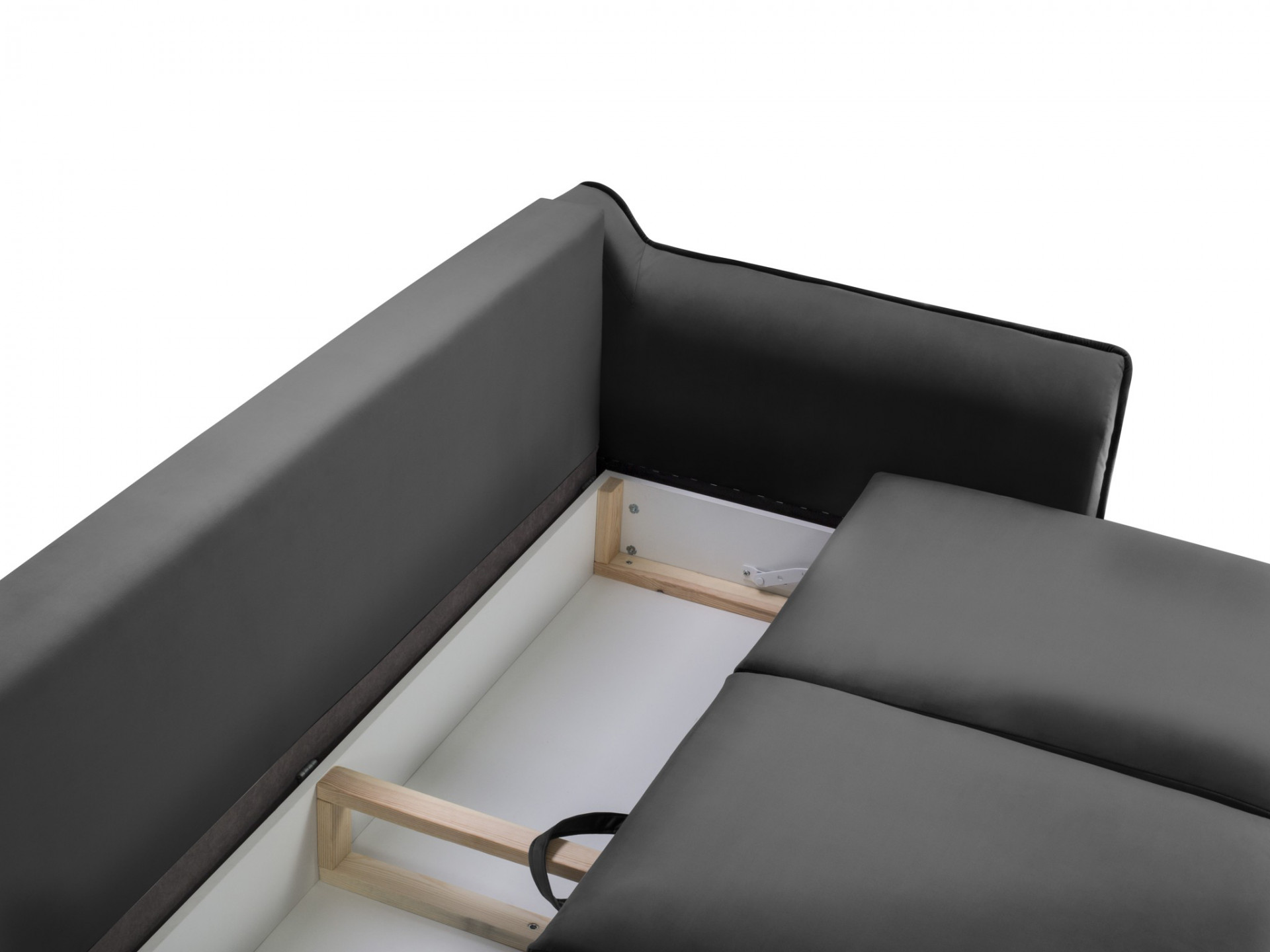 Rozkládací sametová pohovka Basso, úložný prostor, tmavě šedá