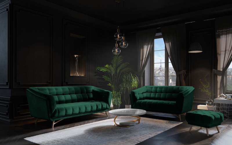 Pohovka Etoile v sametové látce v tmavě zelené barvě je ta nejlepší volba pro toho, kdo požaduje designový kousek a zároveň praktické posezení do interiéru. Samet je na omak velice hladký a lesklý, sedačka může být čištěna i mokrou cestou či pomocí chemických prostředků.