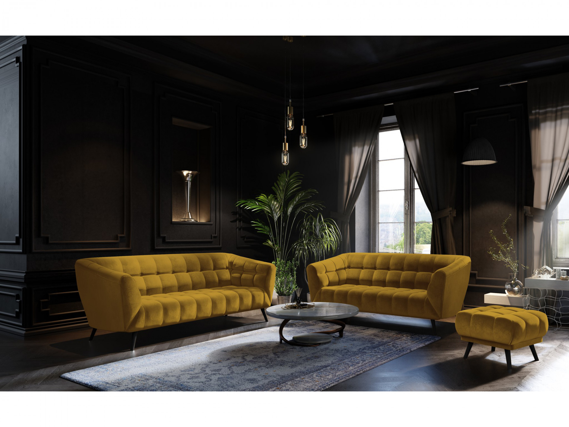Pohovka Etoile v sametové látce ve zlaté barvě je ta nejlepší volba pro toho, kdo požaduje designový kousek a zároveň praktické posezení do interiéru. Samet je na omak velice hladký a lesklý, sedačka může být čištěna i mokrou cestou či pomocí chemických prostředků.