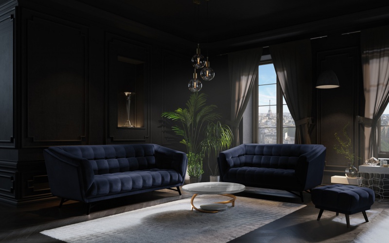 Sametová pohovka Lune, dvojsedák, tmavě modrá