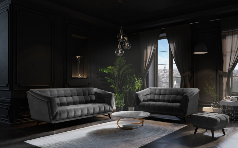 Sametová pohovka Lune, dvojsedák, tmavě šedá