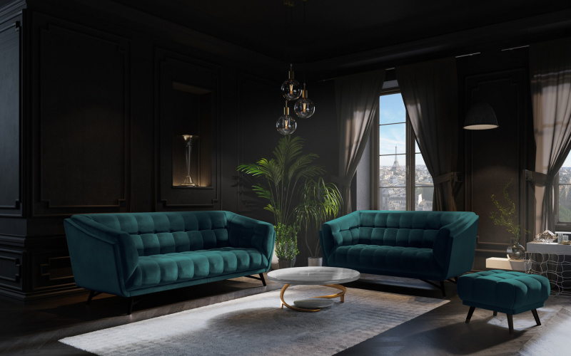 Sametová pohovka Lune, trojsedák, modro-zelená