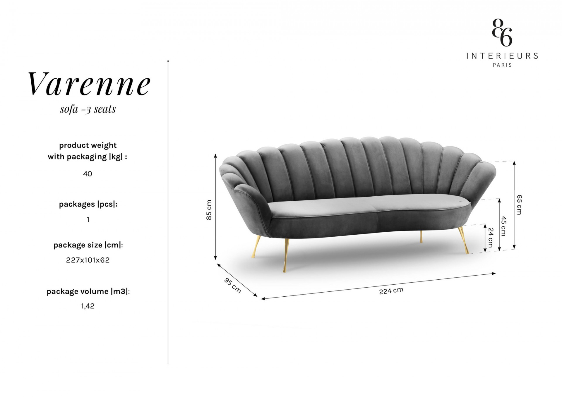 Trojsedačka Varenne v modré sametové látce je ta nejlepší volba pro toho, kdo požaduje designový kousek a zároveň praktické posezení do interiéru. Samet je na omak velice hladký a lesklý, sedačka může být čištěna i mokrou cestou či pomocí chemických prostředků.