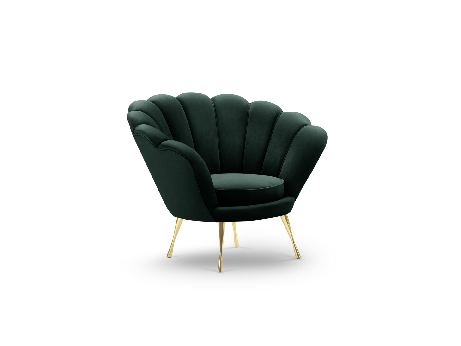 Sametové křeslo Varenne, lahvově zelené, zlaté nohy
