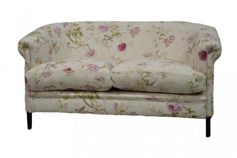 Látková sofa Vincents motivem květin, do setu sedačky patří i křesílka z naší nabídky. Sedačka má dřevěnou kostru.