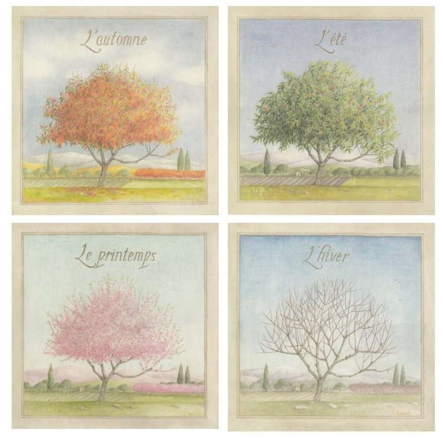 Set obrázků 14x14, jaro, léto, podzim, zima, rám bílý s patinou