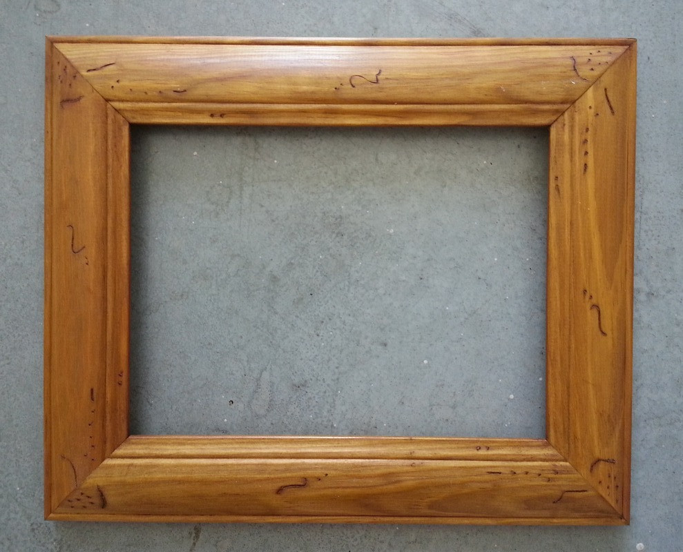 Rám je ručně voskovaný s patinou červotoče v barvě světlého dubu.